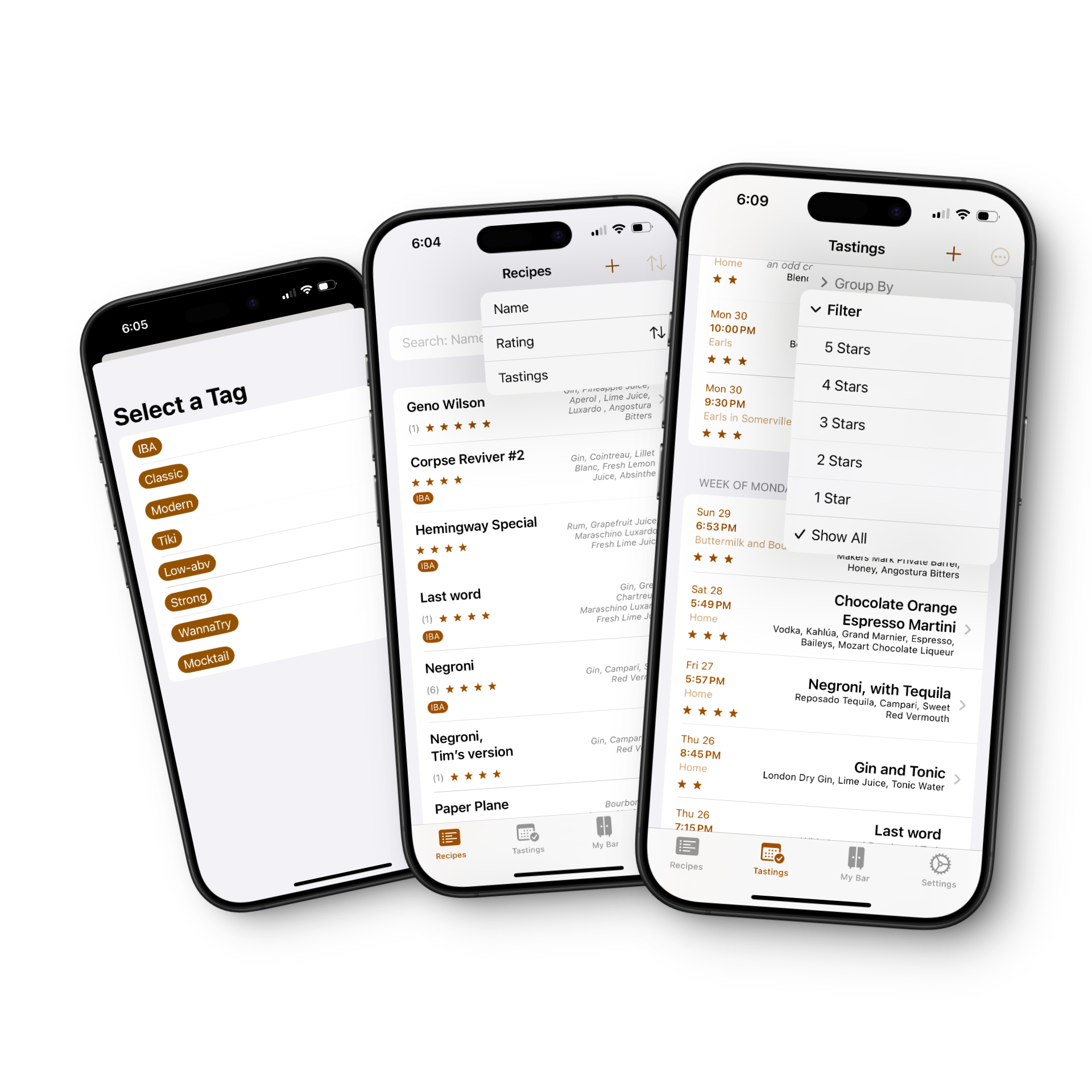- Filter by tags, ratings, and ingredients to find the perfect drink in seconds