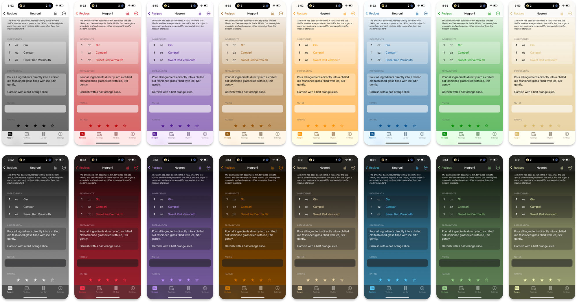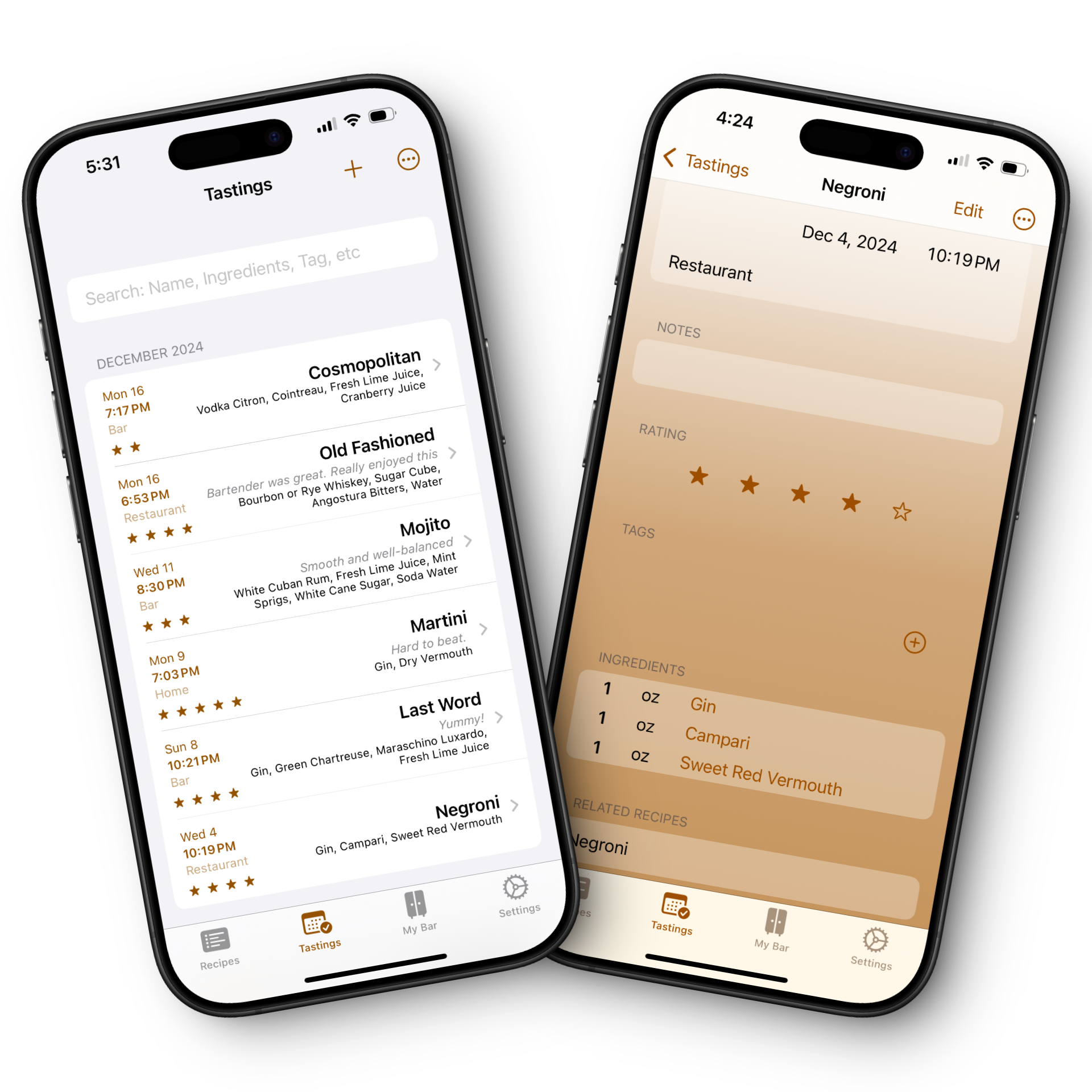 - Rate spirits and recipes and keep track of modifications